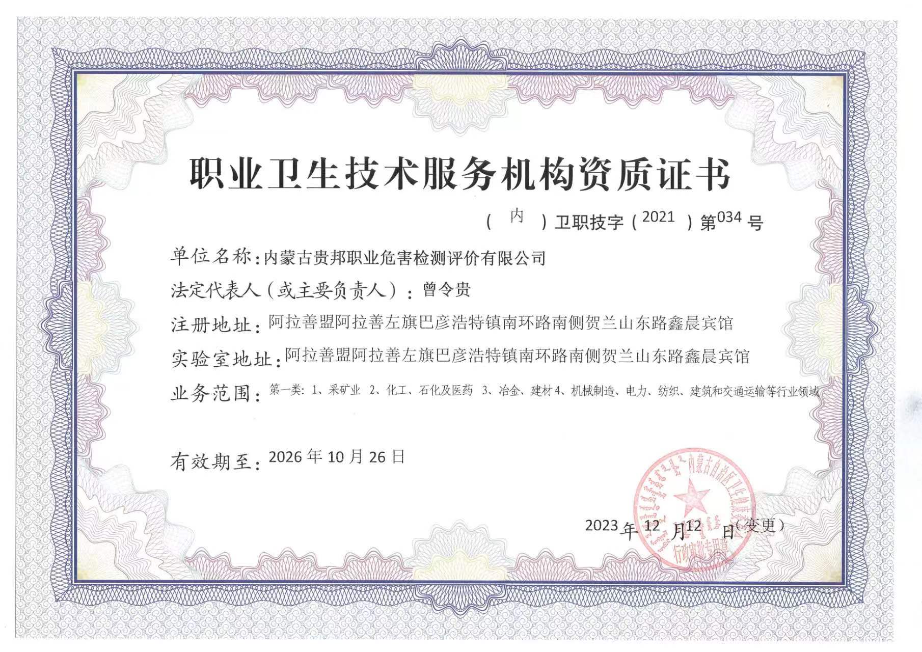 內(nèi)蒙古貴邦職業(yè)危害檢測評價有限公司(m.isunvzi.com)版權(quán)所有 地址:阿拉善盟阿拉善左旗賀蘭山東路加氣站南側(cè)鑫晨賓館一樓 24小時熱線:18947252199 蒙ICP備:蒙ICP備21006705號-1 公安備案號:50011802010212
